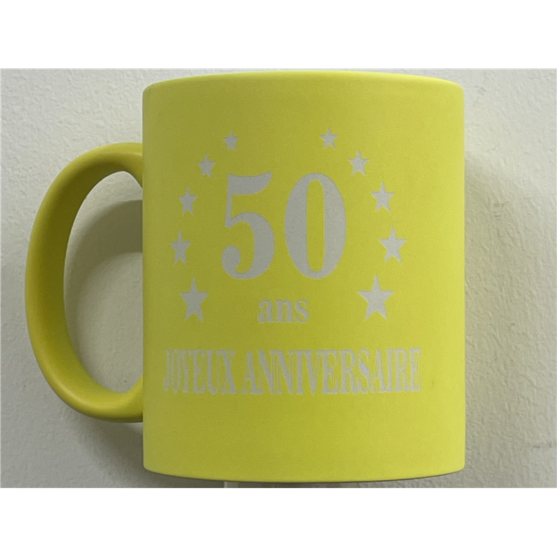 MUG/TASSE - Etoile 50 Ans fluo jaune (en céramique 8cm)