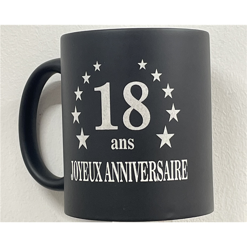 MUG/TASSE - Etoile 18 ans fluo noir (en céramique 8cm)