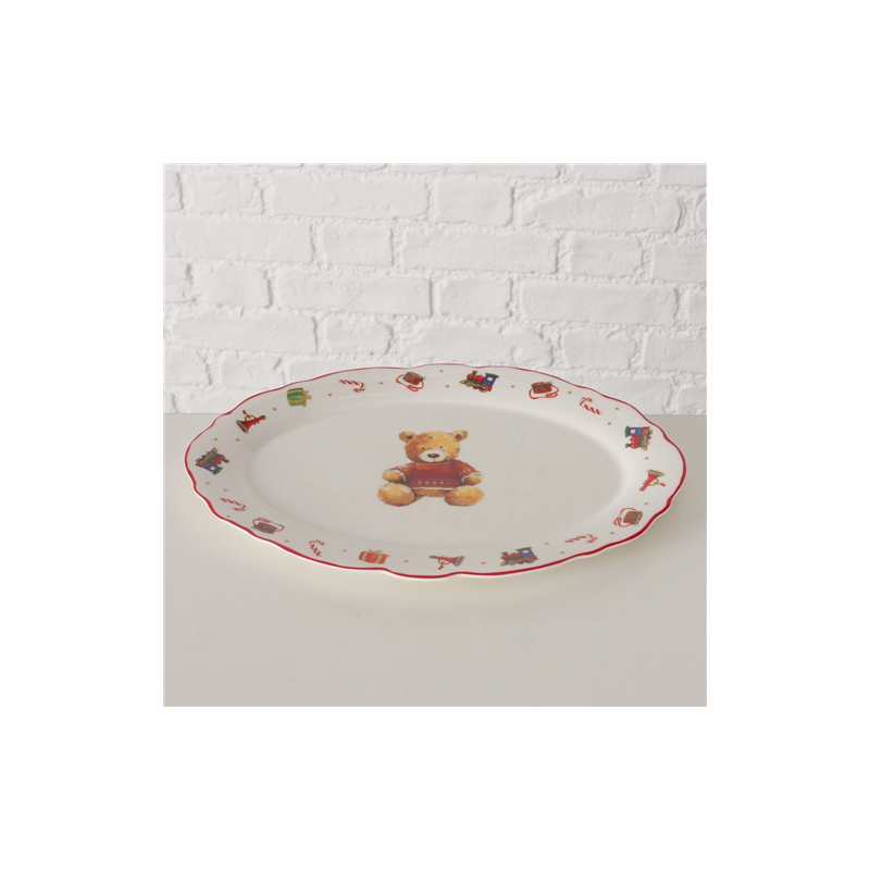 ASSIETTE/PLATEAU - Ourson et ses joujoux vintage (en porcelaine 21 cm x 20cm)