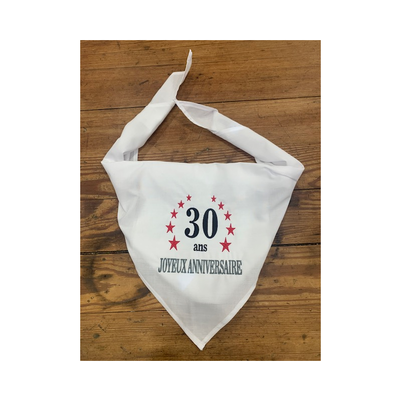 BANDANA/FOULARD - 30 Ans (en tissu 80cm x 39cm)