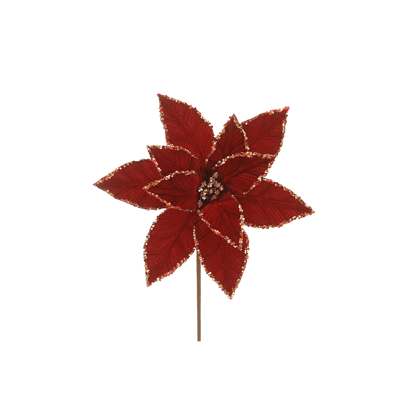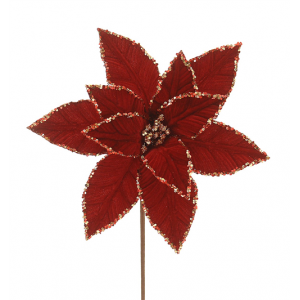 PIQUET/BRANCHE - Poinsettia bordeaux et doré (artificiel 1m)