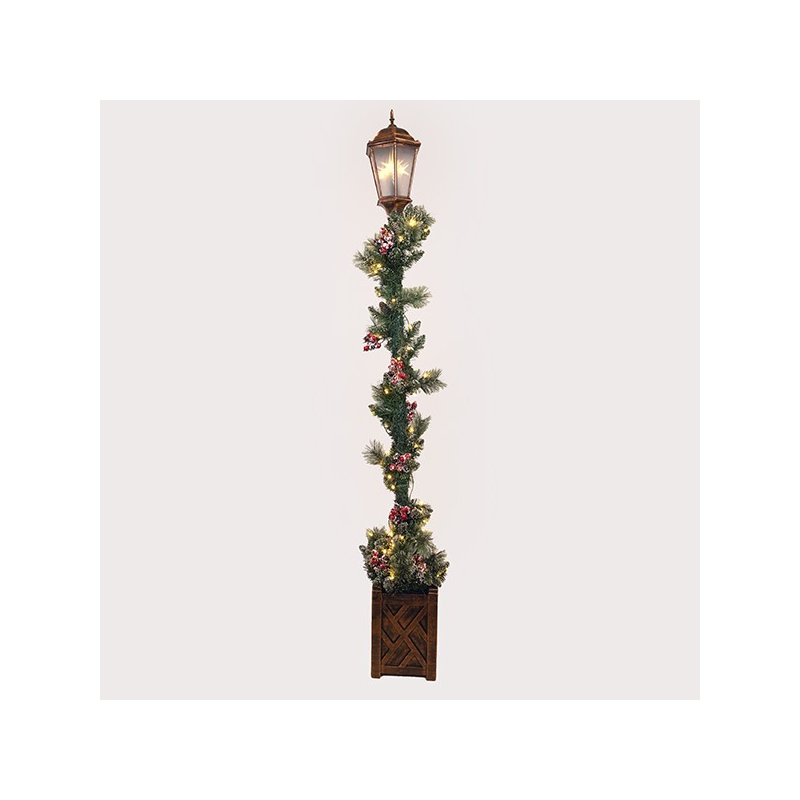 Son pot en bois et son style "réverbère d'antan" en font un objet de décoration parfait pour un thème de Noël traditionnel ou victorien, visible de loin.
