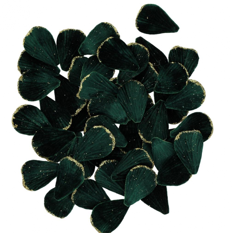 PETALE DE ROSE - Vert foncé avec bord pailleté doré x 60 (en velours 5cm)