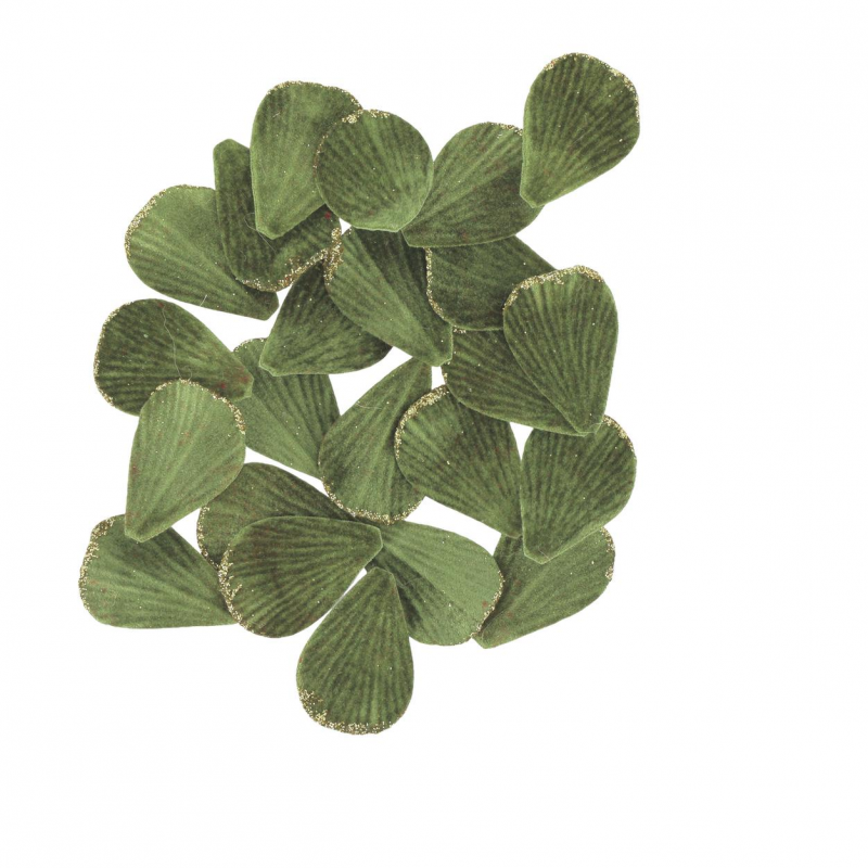 PETALE DE ROSE - Vert pistache avec bord pailleté doré x 60 (en velours 5cm)
