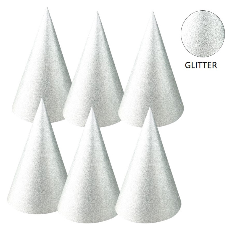 COTILLON - Chapeau pointu argent x 6 (en carton)