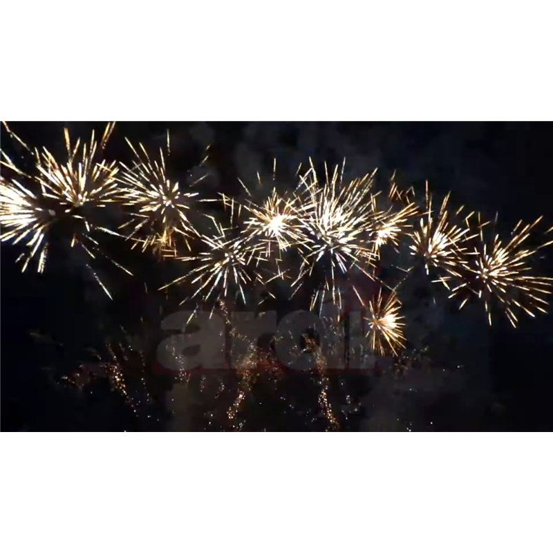 ARTIFICE - F3 - Final de 7 bombettes fleurs titanes or 30mm - Hauteur 30 mètres - Distance de sécurité 30 mètres Article ni repris, ni échangé.