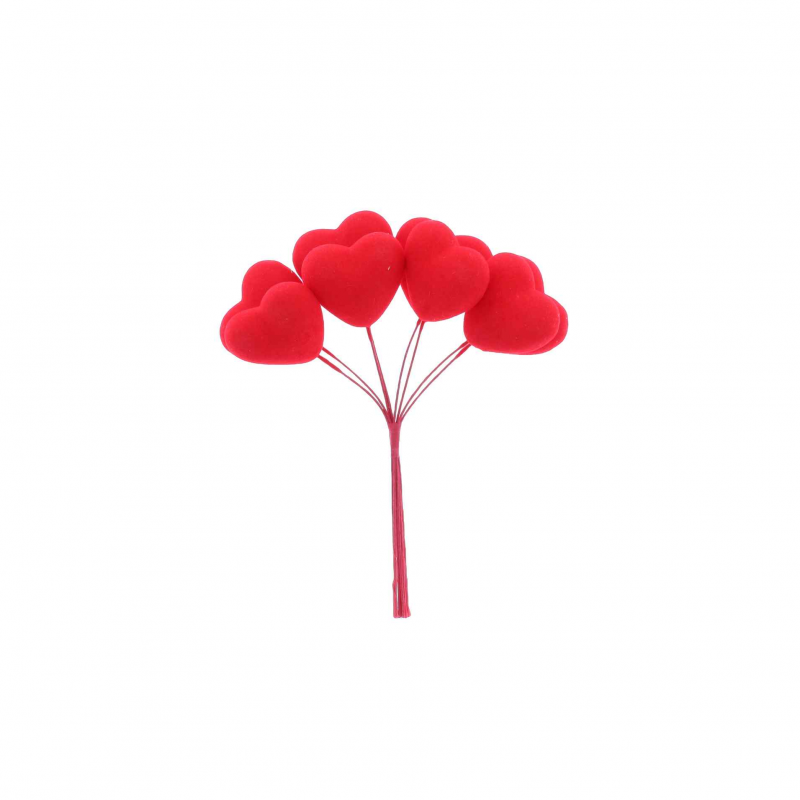 TIGE/PIQUET - Coeur rouge x 8 (en velours 14cm)