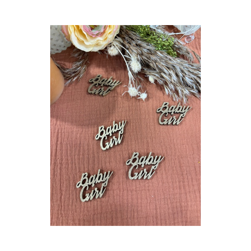 CONFETTIS DE TABLE - Baby girl doré/or x 10 (en bois 3cm x 4cm)