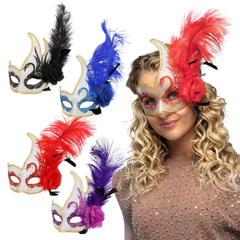 MASQUE/LOUP - Arlequin/venise avec plumes (en pvc coloris au choix)