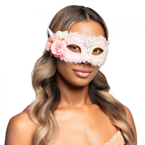 Qu'est ce qu'on ne ferait pas pour les yeux d'une sirène enchanteresse, de couleur rose tendre. Les paillettes brillantes combinées aux fleurs et aux coquillages donnent à ce joli masque un aspect magique.