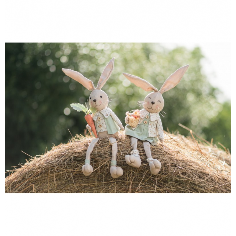 LAPIN/LAPINE - Charlie assis (modèle au choix en tissu 68cm)