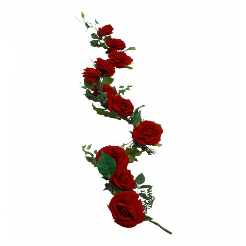 CENTRE DE TABLE - Rose rouge et feuillage LUXE (artificiel 2m)