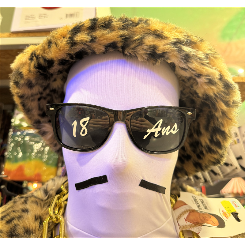 - Look Blues Intemporel : Une forme iconique noire avec l'inscription "18 ans" en blanc contrasté sur les verres pour un effet visuel garanti.