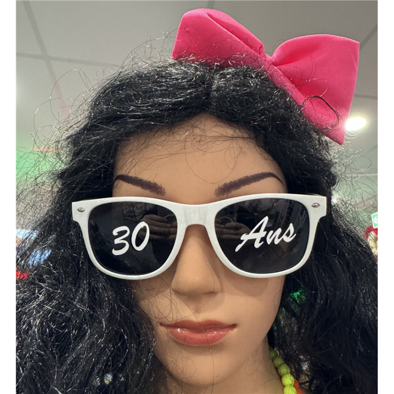 - Look Blues Intemporel : Une monture blanche éclatante avec l'inscription "30 Ans" contrastée sur les verres pour un effet visuel immédiat lors de la soirée.