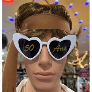 Cinquante ans, c'est l'âge d'or qui se fête avec éclat ! Ces lunettes "50 ans" en forme de cœur, coloris blanc, sélectionnées par Apostrophe déco, sont l'accessoire parfait pour marquer ce cap majeur avec une élégance fantaisie.