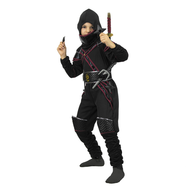 NINJA LUXE - Combinaison avec capuche, ceinture, une épée, deux couteaux, quatre shuriken 4/6 ans 128cm