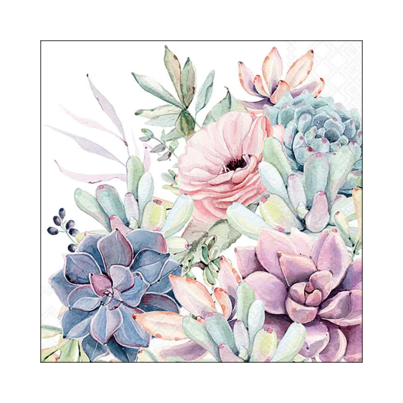 SERVIETTE - Succulentes pastels x 20 (33cm x 33cm)