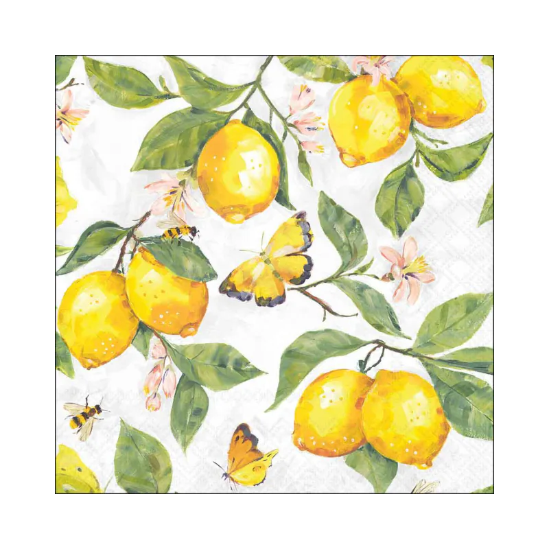 SERVIETTE - Citrons et papillons x 20 (33cm x 33cm)