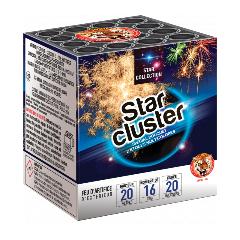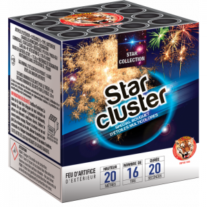Le feu d'artifice compact « STAR CLUSTER » vous réjouira par sa succession de bouquets d’étoiles de toutes les couleurs.