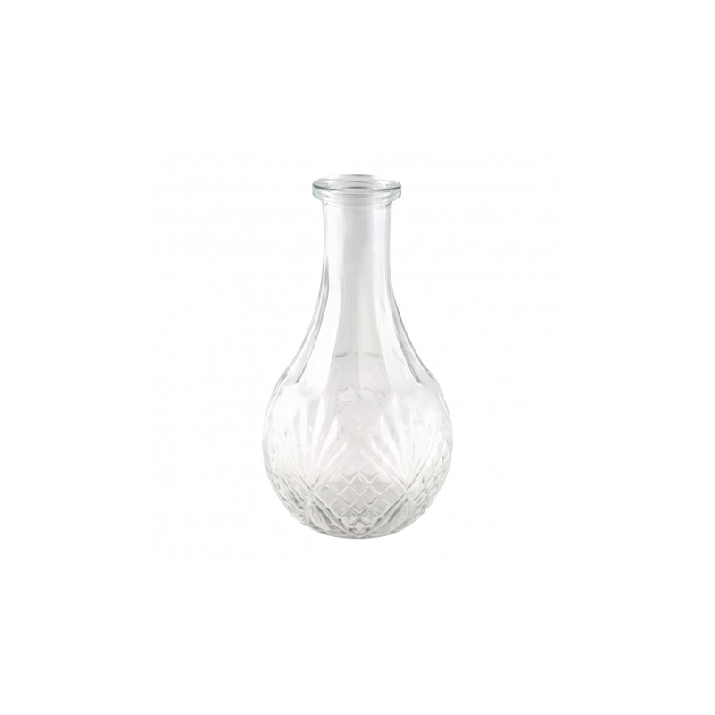 - Design Ciselé Raffiné : La base du vase présente un travail du verre en relief avec des motifs géométriques et floraux, offrant un aspect précieux et texturé.