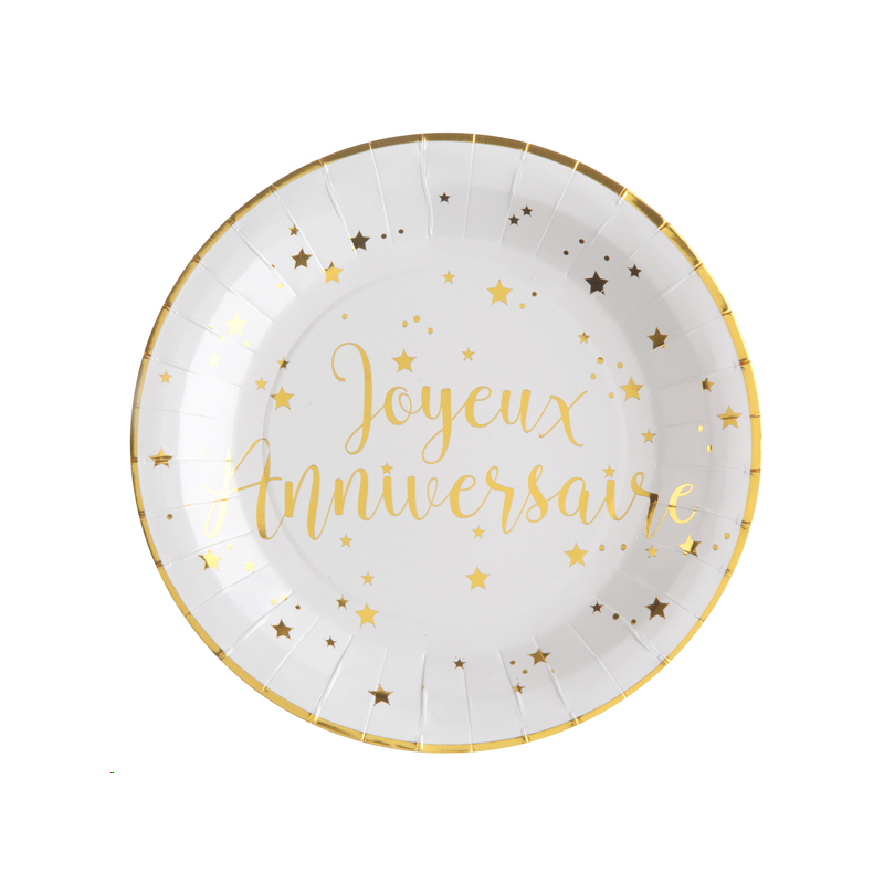GOBELET/VERRE - Joyeux anniversaire blanc avec inscription or/doré x 10 (en carton 23cm)