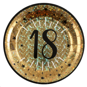 ASSIETTE - 18 ans or/noir étincelant x 10 (en carton 23cm)