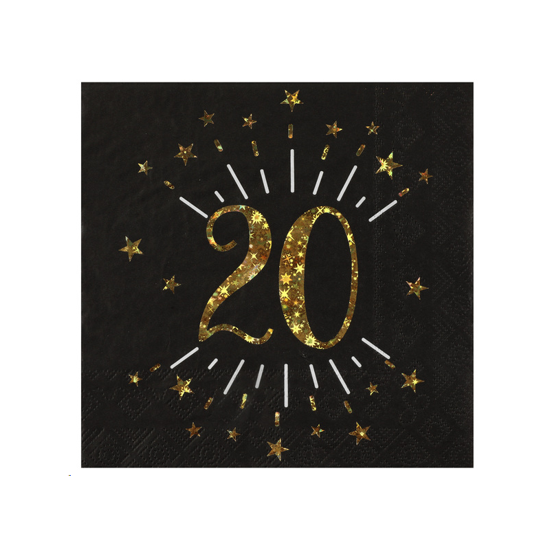 SERVIETTE - 20 ans or/noir étincelant x 10 (33cm x 33cm)