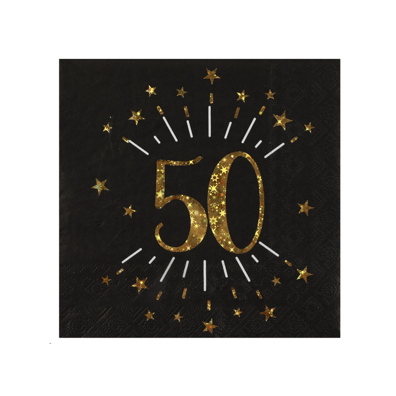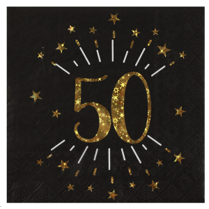 SERVIETTE - 50 ans or/noir étincelant x 10 (33cm x 33cm)