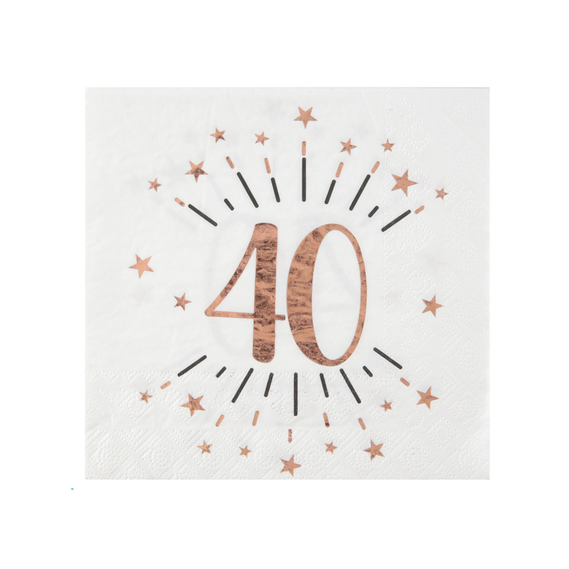 SERVIETTE - 40 ans rose gold étincelant x 10 (33cm x 33cm)