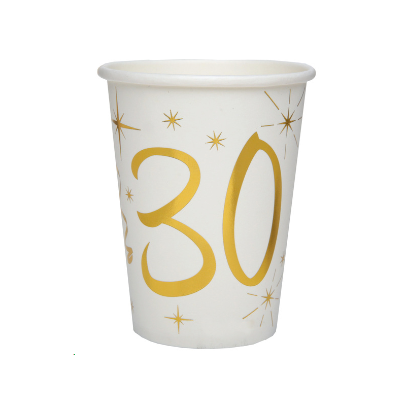 GOBELET/VERRE - 30 ans blanc avec inscription or/dorée x 10 (en carton 27cl)