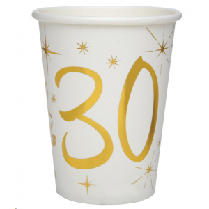 GOBELET/VERRE - 30 ans blanc avec inscription or/dorée x 10 (en carton 23cm)