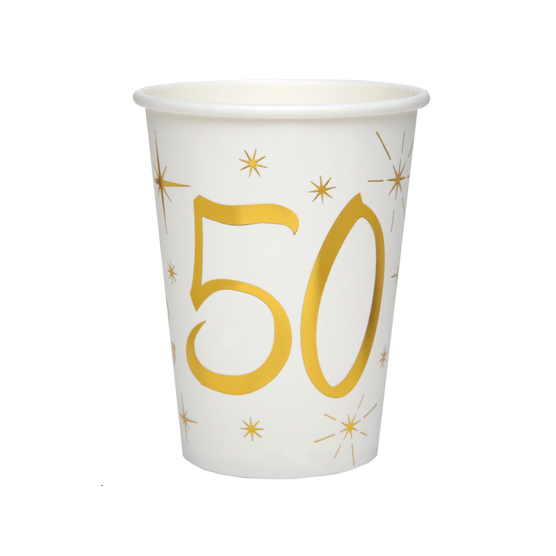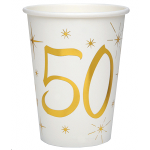 GOBELET/VERRE - 50 ans blanc avec inscription or/dorée x 10 (en carton 23cm)