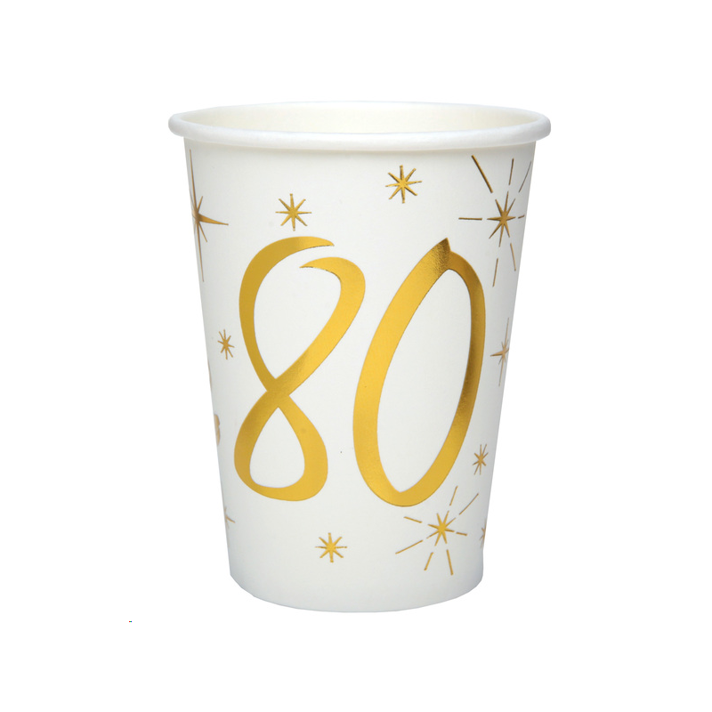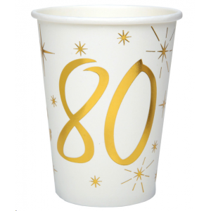 GOBELET/VERRE - 80 ans blanc avec inscription or/dorée x 10 (en carton 27cl)