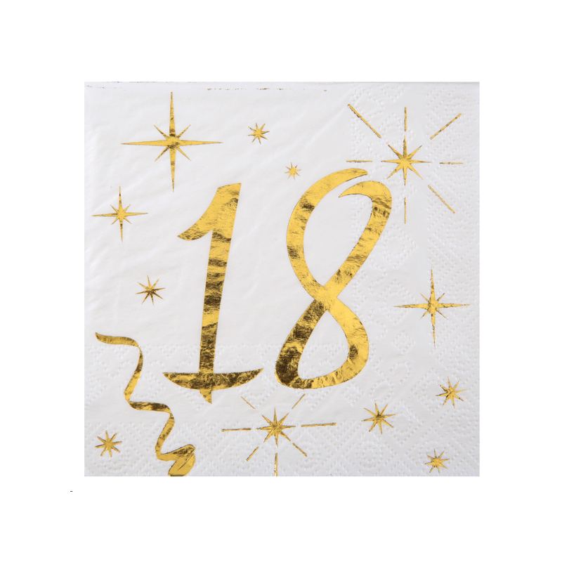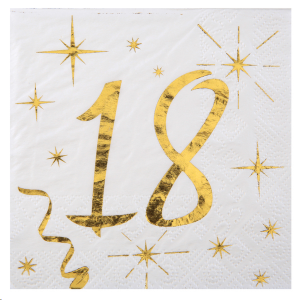 SERVIETTE - 18 ans blanche avec inscription or/dorée x 20 (20cm x 20cm)