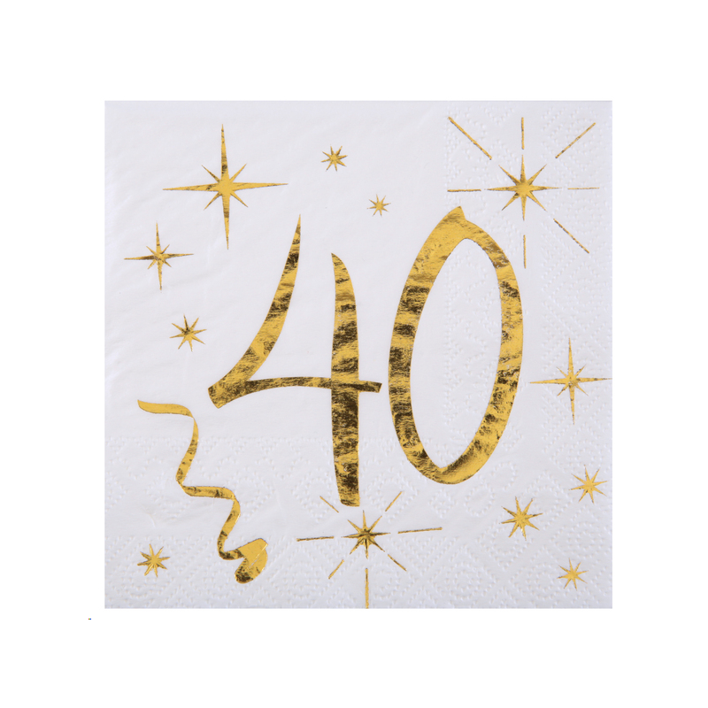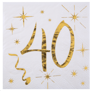 SERVIETTE - 40 ans blanche avec inscription or/dorée x 20 (20cm x 20cm)