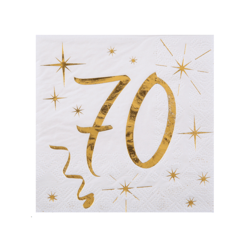 SERVIETTE - 70 ans blanche avec inscription or/dorée x 20 (20cm x 20cm)