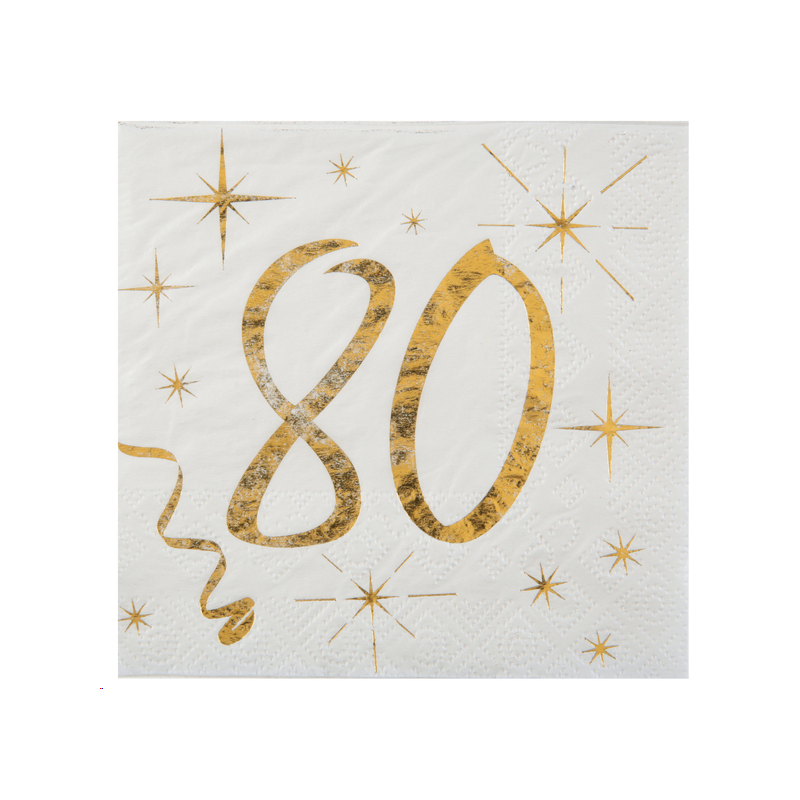 SERVIETTE - 80 ans blanche avec inscription or/dorée x 20 (20cm x 20cm)