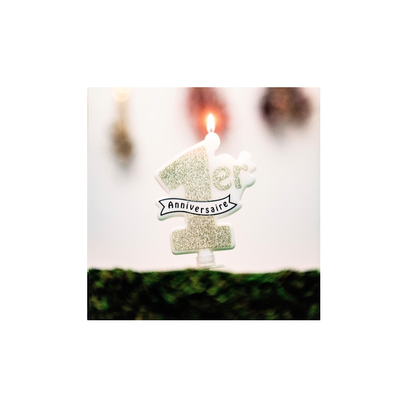 BOUGIE - Mon 1er anniversaire or/doré/gold (8cm x 10cm)
