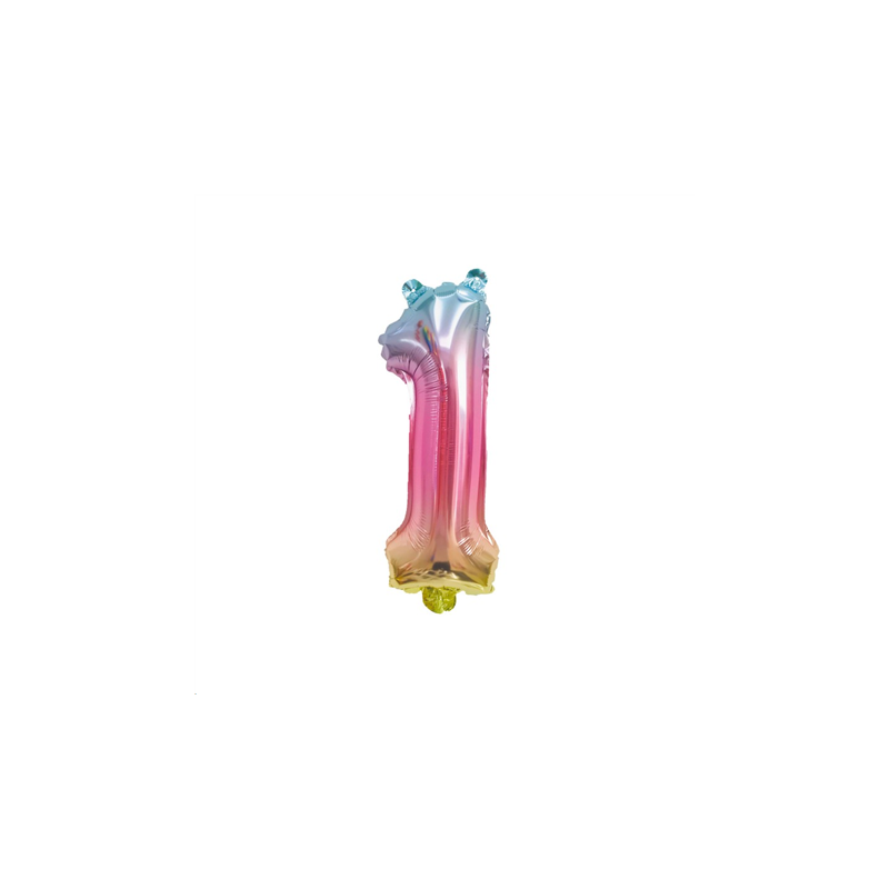 BALLON MYLARD - Chiffre 1 multicolore pastel (36cm) - SE GONFLE UNIQUEMENT A L'AIR
