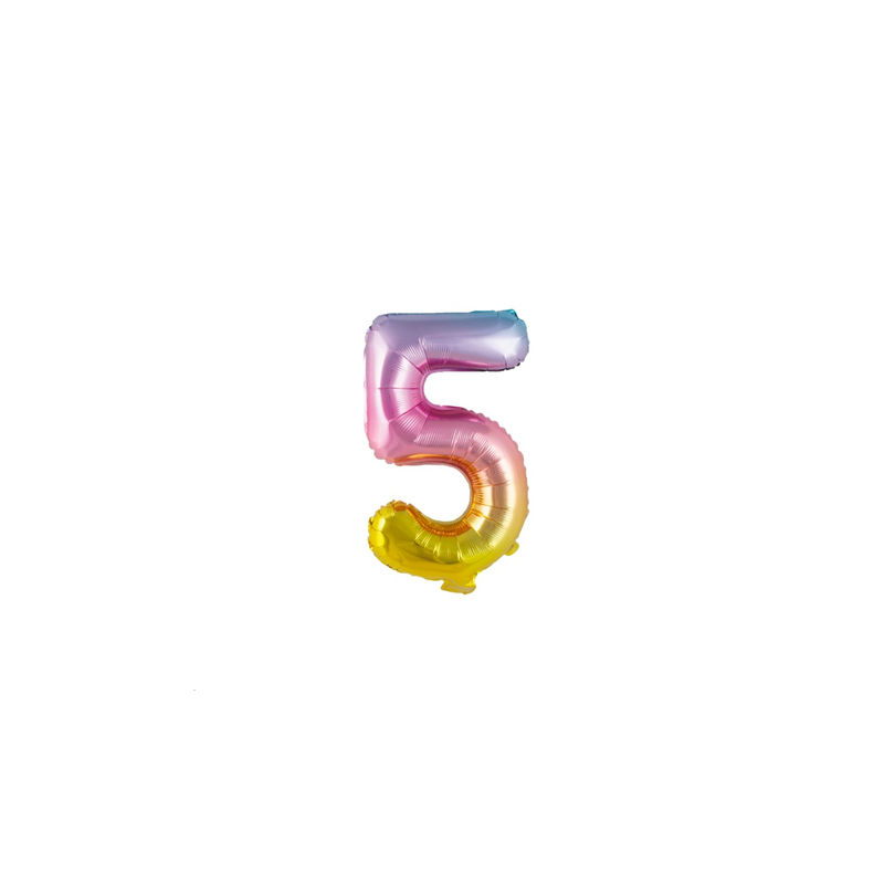 BALLON MYLARD - Chiffre 5 multicolore pastel (36cm)
