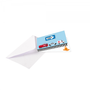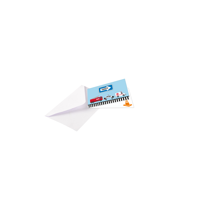 INVITATION - Voiture/sur la route/pompier/police/ambulance x 8 (avec enveloppe 8cm x 10cm)