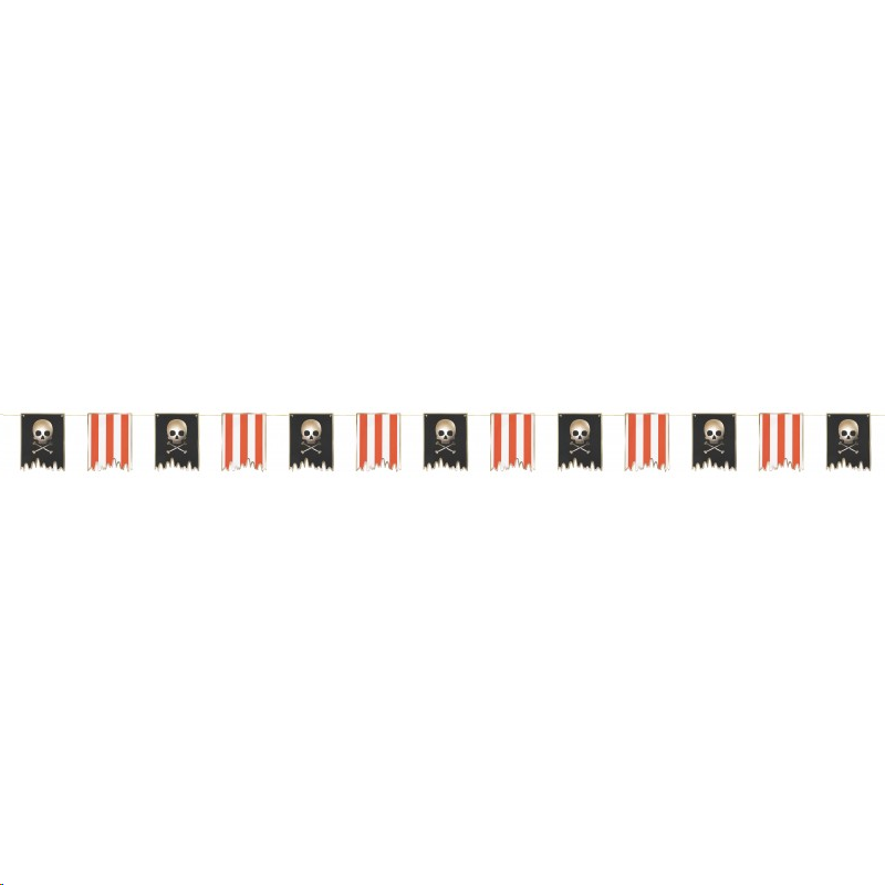 GUIRLANDE - Pirate fanion tête de mort/rayure rouge (en carton 3m)