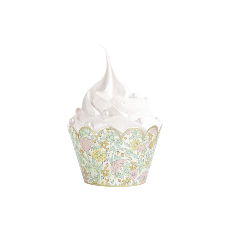 CAISSETTE A CUP CAKE/CUP CAKE WRAPPER - Liberty/shabby avec bord or/doré/gold x 6 (en carton 5cm)