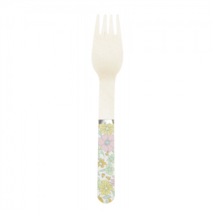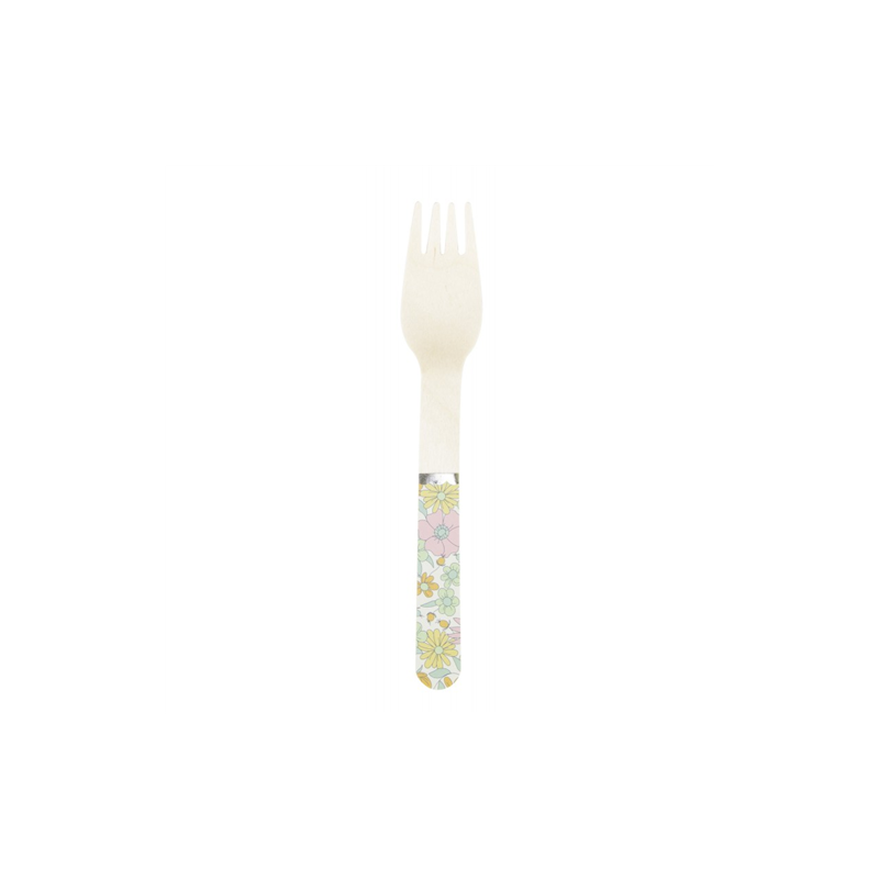 FOURCHETTE - Avec manche liberty/shabby avec feston or/doré/gold x 8 (en bois 15cm)