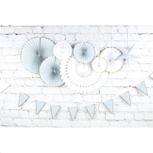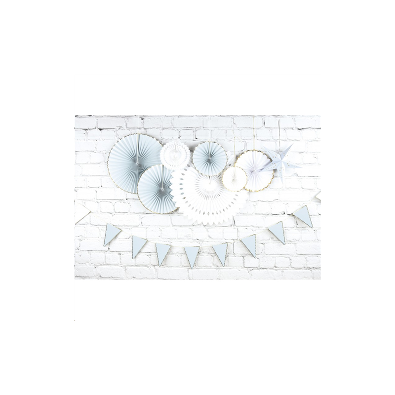 GUIRLANDE - Fanion bleu clair/pastel avec bord festonné or/doré/gold (en carton 3m)