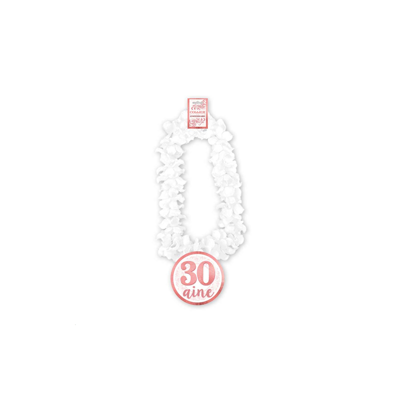 COLLIER DE FLEURS/HAWAI - 30 ans rose/blanc