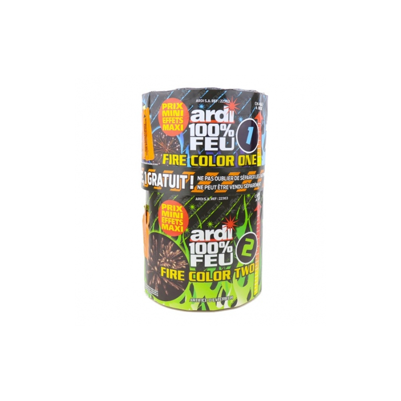 ARTIFICE - FIRE COLOR ONE & TWO - F2 - Durée 25 secondes - Hauteur 30 mètres - Distance de sécurité 8 mètres - Article ni repris, ni échangé.
