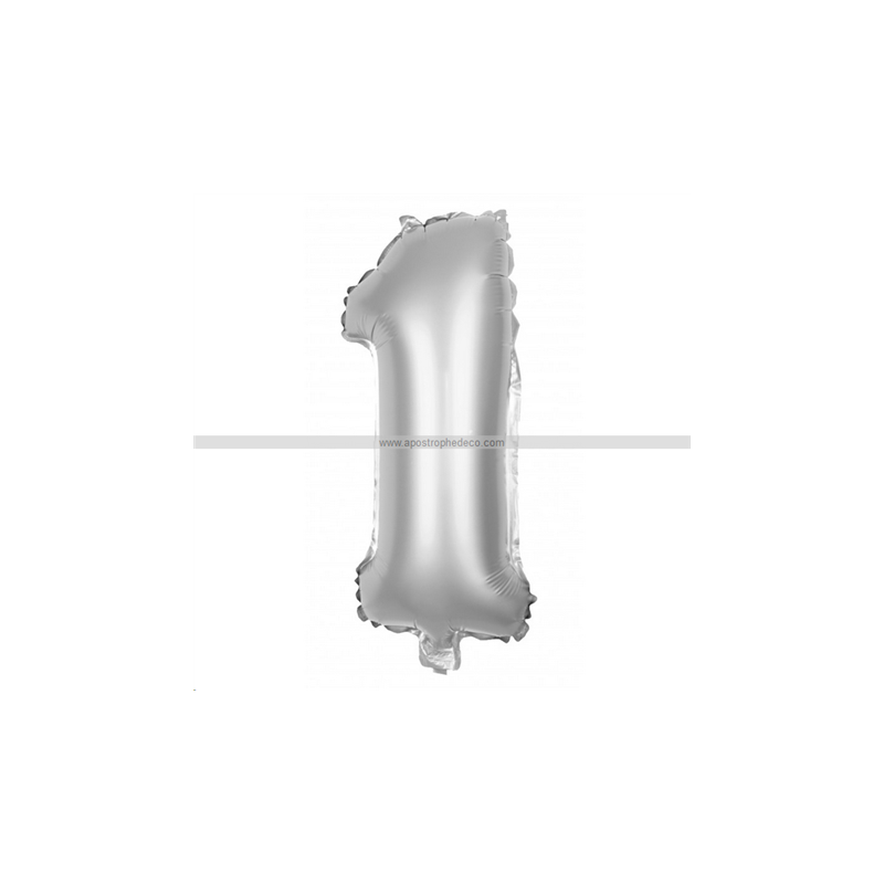 BALLON MYLARD - Chiffre 1 argent (36cm) - SE GONFLE UNIQUEMENT A L'AIR