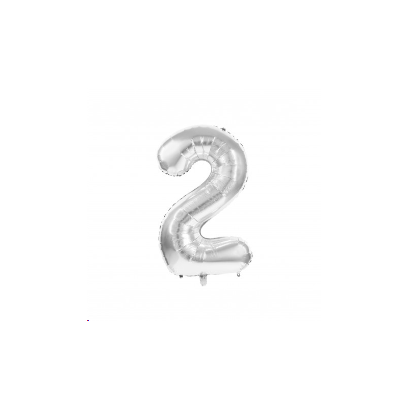BALLON MYLARD - Chiffre 2 argent (36cm) - SE GONFLE UNIQUEMENT A L'AIR