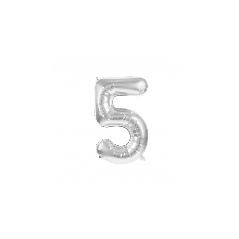 BALLON MYLARD - Chiffre 5 argent (36cm) - SE GONFLE UNIQUEMENT A L'AIR